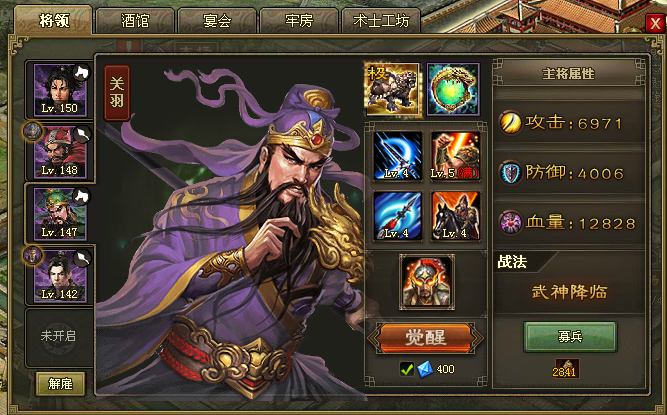 觉醒条件方面,需主将等级达到121级并击败五丈原副本守将张颌。开启屠城功能后,每日可通过屠城获取4颗觉醒石,配合觉醒酒与宝石使用。建议优先将关羽、张飞、赵云、诸葛亮四位武将纳入觉醒序列,因其觉醒后技能伤害增幅显著。觉醒过程中需注意临时攻击增益的数值区间,临时攻击超过4000时建议暂停觉醒以提高成功率。