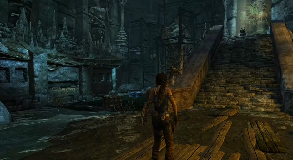 主要分为两个关键部分。第一个部分位于入口左侧,上下各有一个窗户,玩家需要先转动开关关闭窗户,然后返回门口等待下方窗户被风吹开时再次转动开关升起平台,迅速跳上木箱再跃至平台,上方窗户会被吹开,风力将推动平台移动,抓住时机跳至墙上的横梁即可通过。需转动开关升起平台时必须等待有风进入,否则会失败。