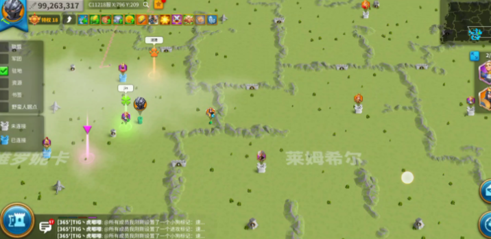 向朋友发送位置坐标是团队协作的重要功能。具体操作步骤如下:打开游戏后,选择一个需要发送坐标位置的建筑或地点,点击分享图标,再点击定位图标,选择聊天频道,系统会提示准备发送的位置坐标,确认后即可完成发送。这一功能适用于联盟集结、资源点标记等多种场景。