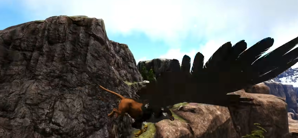 驯服成功后就能骑上狮鹫翱翔天际了。狮鹫有个很酷的技能,俯冲时能造成多倍伤害。操作方法是先飞到高处,然后垂直俯冲快落地时拐一下翅膀横扫过去。还有个滑翔技巧,俯冲获得最大速度后把视角拉回天空,这样能保持高速移动又不用消耗太多耐力。