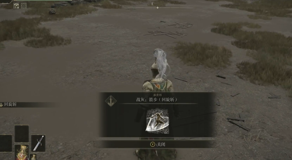 如果懒得自己找,也可以去圆桌厅堂找战技老师贝纳尔买。这家伙站在大厅角落,花1200卢恩就能从他手里买到回旋斩战灰。虽然要花钱,但胜在安全省事,特别适合不想折腾的小伙伴。记得多刷点卢恩,前期攒钱不容易,打几个巨人或者砸碎发光骷髅头都能快速来钱。