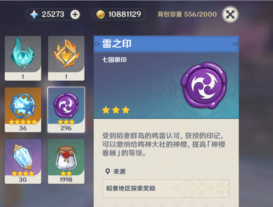 如果遇到雷神瞳被雷结界封锁,说明需要提升神樱树等级。供奉雷之印将神樱树升到17级后,才能解锁中级雷屏障的探索权限。平时开宝箱时记得收集雷之印,普通宝箱给1个,珍贵宝箱给3个,华丽宝箱给4个。稻妻的雷神瞳总计181个,全收集后能将雷神像升到满级,获得丰厚奖励。