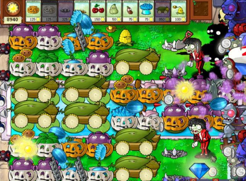 屋顶关卡的地形特殊,玉米加农炮要摆在前两列,后面用冰瓜和忧郁菇防小鬼和蹦极僵尸。浓雾模式记得带灯,冰瓜和忧郁菇组合能覆盖全场,叶子保护伞防偷袭。冰瓜的溅射伤害超好用,能让僵尸寸步难行,但别把它们种得太分散,集中火力才是王道。忧郁蘑菇的穿透攻击超适合对付成群僵尸,尤其是矿工僵尸这种爱钻地的家伙。