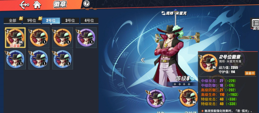 特定伙伴的徽章有专属效果,比如黑足、索隆和艾斯的徽章附带特殊技能加成,这类徽章优先级最高。普通徽章只有基础属性加成,可以暂时用紫色过渡。强化次数会过期,拿到后要立刻使用,建议优先强化到20-30级性价比最高,后期再集中资源培养橙色毕业徽章。