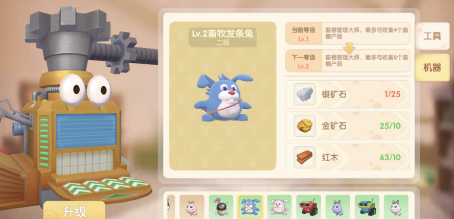 畜牧小屋的功能性体现在养殖牛、羊等动物获取副产品。解锁后系统会赠送奶牛和绵羊幼崽,但需注意每个动物栏位上限为4只,建议混合饲养以最大化收益。动物成熟后需使用剃须刀剪羊毛或挤奶桶收集牛奶,这些工具可在尤尤商店购买。饲料管理是关键,需定期在商店补充牧畜饲料,否则动物饥饿会降低产出效率。