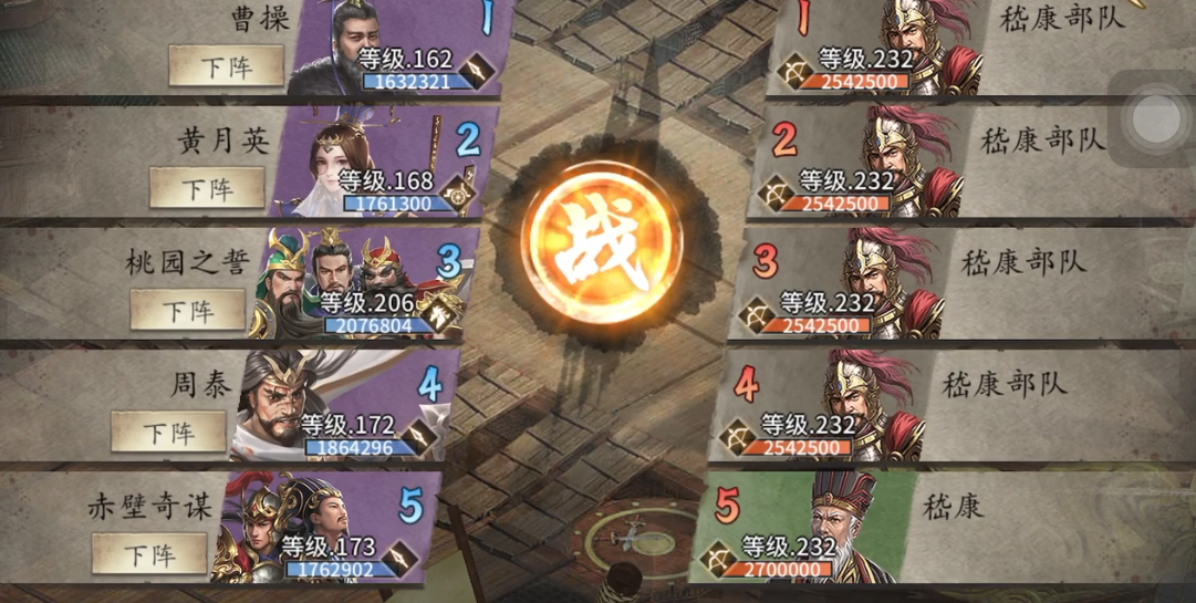 关羽首发出战,利用觉醒战法快速清理前排;周泰次之,依靠固若金汤和步兵克制持续压制;孙策与孟获负责收尾。若多次尝试后仍无法通关,可消耗500金币直接跳过,避免浪费粮食。副本存在幸运模式机制,重复挑战可能触发连续斩杀效果。