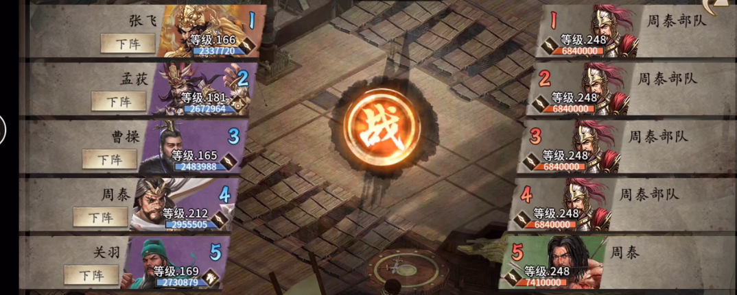 对于没有高级阵法的朋友,可以尝试用关羽带副将孙权的组合,觉醒战法能有效破甲。张飞带副将瞎子,用二车装备即可。曹操带四车和夏侯渊,最后一排放战法给周泰加罩子。三车周泰带孙坚,装备尽量堆高统率,方圆阵带金汤和步兵克制。马超带一车和曹仁,锋矢阵要70级以上,这样能在敌方半血时发挥关键作用。打副本时不要急躁,多观察敌方血量变化。周泰的七刀机制是关键,尽量让他叠满被动再输出。如果卡关了,可以调整装备或副将,比如把孙权换成黄月英试试。