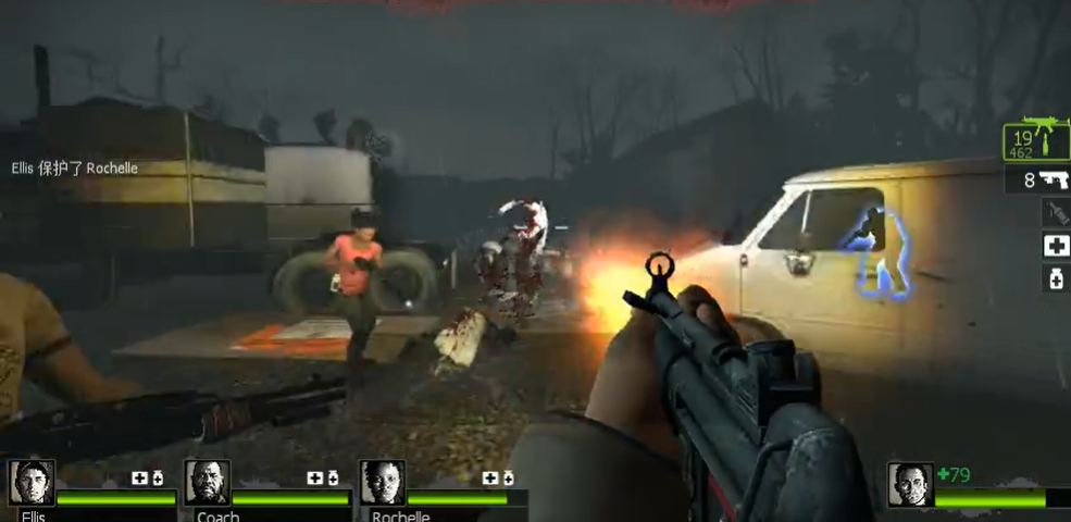 后半程的难点是防守战,比如需要启动发电机或坚守等待救援。找角落或背靠墙壁建立防线,用汽油桶或煤气罐制造爆炸陷阱。特感坦克出现时别硬刚,利用树木绕圈,等它捶地僵直时集火输出。最终撤离点通常需要触发警报,提前分配好燃烧瓶和土制炸弹,堵住路口拖延尸潮。如果倒地了也别慌,尽量爬到队友附近,避免被落单围殴。