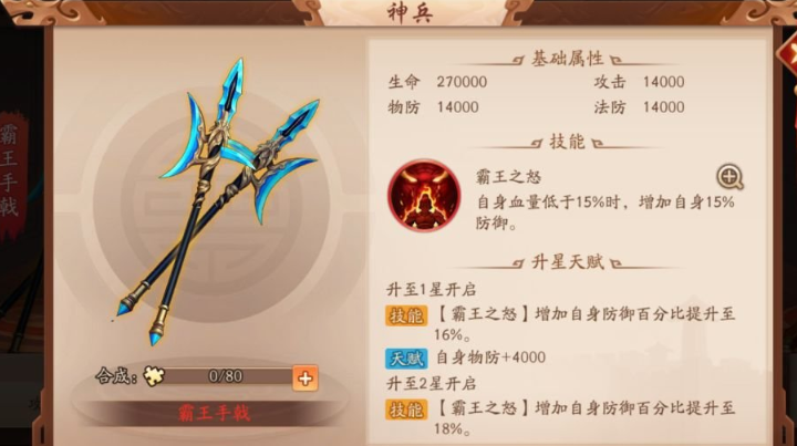 霸王手戟适合残血状态下的防御强化,虽然触发条件较苛刻,但给奶妈携带能提高容错率。当奶妈血量较低时,增加的防御属性可以帮助她撑到下一轮治疗,避免被敌方秒杀。如果队伍缺乏保护型武将,奶妈带霸王手戟能有效减少暴毙风险,确保团队治疗链不断档。