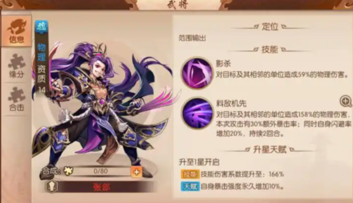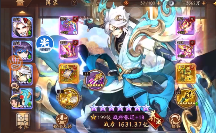 张辽作为魏国核心武将之一,在游戏中定位为突袭型后排AOE输出,兼具高爆发与团队辅助能力。其主动技能破敌之舞可对敌方全体造成显著物理伤害,同时附加易伤效果提升团队输出效率,而特殊技能华佗再世能在普攻时概率治疗己方最低血量单位,实现攻守兼备的战术价值。这种独特的技能组合使张辽成为魏国阵容中不可替代的多面手,尤其适合追求速攻与控场结合的战术体系。