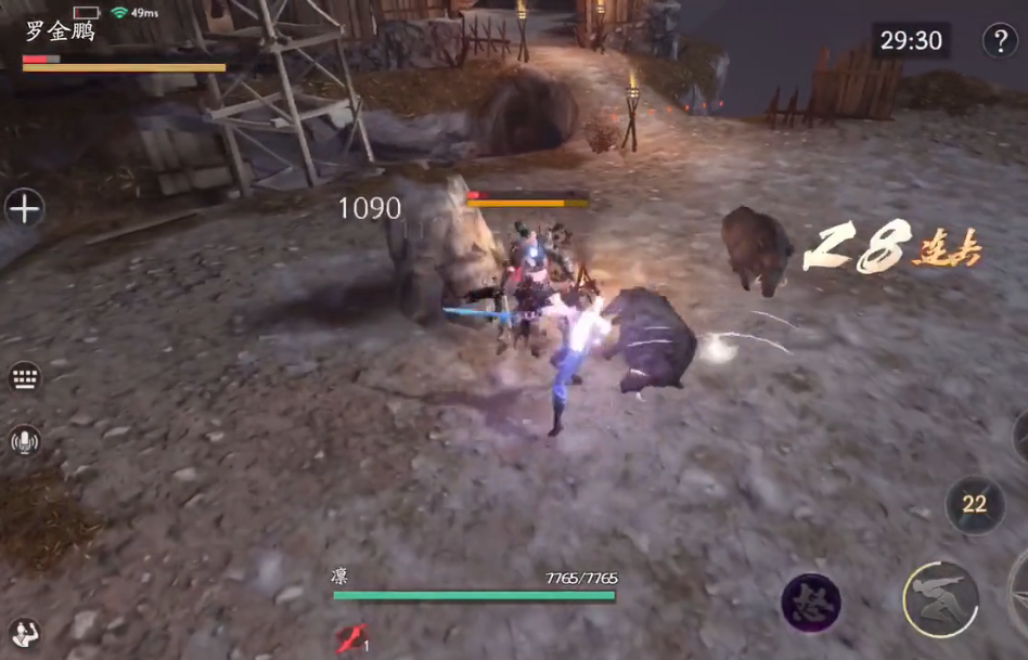 战斗中需合理分配精力值,避免因频繁闪避陷入被动。罗金鹏独身时倾向近战,召唤野猪后转为远程周旋,需根据战场动态调整目标优先级。旋转射击伤害极高,需果断中断输出后撤;突进技能会微调方向,建议横向闪避至其身后反击。召唤野猪的口哨动作为关键打断时机,成功打断可大幅降低战斗难度。