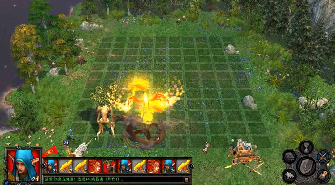 凤凰的复活机制是其最大优势,每场战斗可复活一次且数量完全恢复,因此必须确保在首次击杀后能快速清理残余。优先使用高爆发伤害单位如黑龙、泰坦或深渊恶魔,通过单次高额输出减少其复活后的威胁。若缺乏顶级兵种,可依赖幻象魔法复制高输出单位,或利用破坏系魔法如地狱烈火进行范围压制。需注意凤凰对火系魔法免疫,因此避免使用火属性攻击。