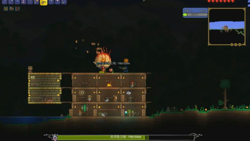 挑战这些boss前,需确保基础装备达标,例如至少拥有铁套或银套级别的防具,并准备足够的药水和战斗平台。合理利用环境和走位技巧是降低战斗难度的关键。击败这些boss后,玩家将具备足够的实力进入游戏中期,为后续挑战血肉之墙等更高难度boss做好准备。