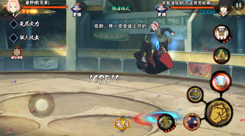 在决斗场使用百豪樱时,记得多利用她的抓取技能。一技能樱花抱是个不错的突进抓取技能,命中后可以接抱摔,觉醒状态下长按还能把敌人甩向版边。二技能樱花冲在普通模式下没有扫地效果,但觉醒后就有了。这两个技能配合普攻可以打出不错的连招,特别是卡四段普攻的位移效果,能骗对手替身。大招后可以接技能,但要注意地面两击容易被顶掉,建议在敌人没替身时使用。
