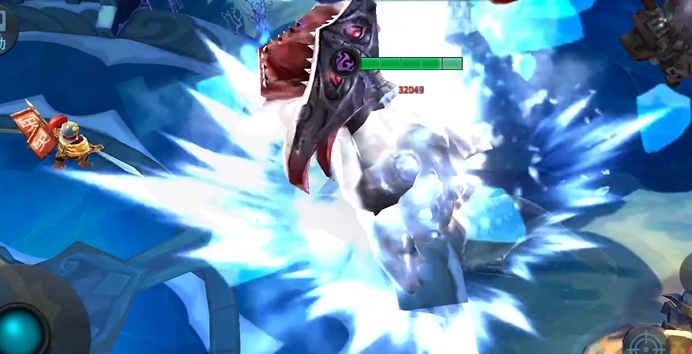 玩家需要通过击碎雪堆获取冰魄神珠碎片来操控上古巨兽,这是该玩法的核心机制。雪堆由地图上方飞翔的鲲鹏随机抛落,击碎后英雄脚下会出现红圈标记,需迅速携带碎片靠近敌方建筑(如巨塔或基地),碎片会在倒计时结束后掉落并召唤巨兽。巨兽出现时会吞噬范围内所有目标,包括建筑和英雄,因此需注意躲避红光预警区域。