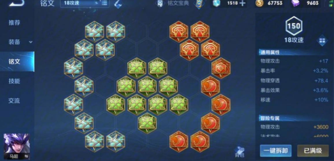 搭配是百穿铭文蓝色带隐匿,绿色带鹰眼,红色带异变。这套铭文能提供大量的物理攻击和物理穿透,让马超前期的戳人就很痛,隐匿加的移速更是核心属性。如果你想追求更极致的攻速手感,也可以在红色铭文里掺入几个红月,这样能卡到马超的攻速阈值,让强化普攻的释放后摇感觉更顺滑一些。