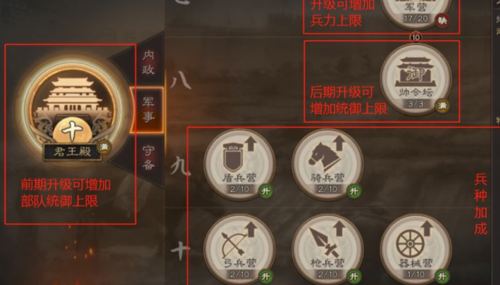 如果你像很多玩家一样,主打的是吴国弓兵、蜀国智弓或者群雄阵容里的弓兵队伍,那么弓兵营无疑是你必须尽快点满的核心建筑。它的效果和你队伍里的弓兵宝物、提升兵种适性的装备以及兵战营、势力协力等其他建筑的效果还能形成联动,产生复合增益,让你的主力队伍如虎添翼。记住一点,弓兵营提供的属性加成,需要你的弓兵部队实际出征、驻守或进攻时才会生效,光是把队伍放在主城里是吃不到加成的。要想发挥它的最大价值,就果断把你的弓兵队伍调到前线去吧。