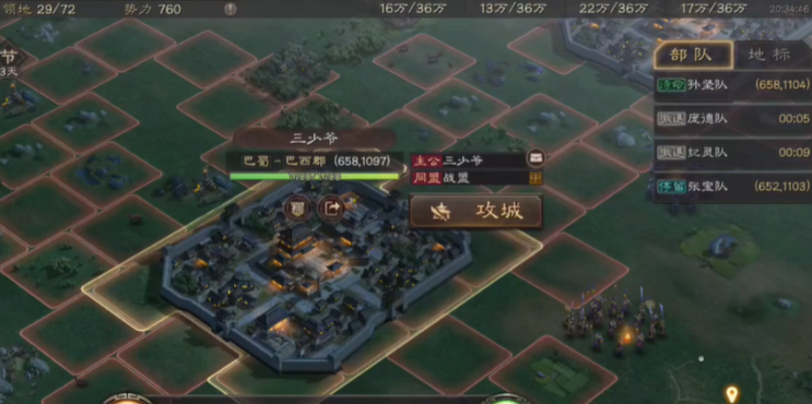 打下一个分城,光靠一队人马可不行,讲究的是团队协作和战术配合。最稳妥的方法是喊上盟友一起集火,大家分工明确,谁出主力队伍负责清理守军,谁出器械部队专门拆城防。进攻的时机也得挑,最好选在对方玩家活跃度低的时候,比如深夜或凌晨,这样能降低被对方主力部队援救或偷袭的风险。开打时,通常先用主力部队把城池的驻守部队清理干净,这个过程要快,尽量减少战损。等守军被清空后,器械部队再顶上去,专门攻击城池的耐久度。器械部队行军慢、防御弱,一定要确保周围安全,或者让主力部队在旁边保护着,防止被敌人的援军吃掉。