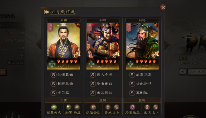 要让这套配合发挥效果,你需要围绕张飞构建阵容。在经典的桃园盾或五虎枪阵容中,张飞通常担任核心输出,加点推荐全武力以最大化伤害,兵书则常选择作战系列的胜而益强、胜战和执锐来增强续航与爆发。如果没有刚勇无前,可以考虑使用横扫千军、绝地反击或据水断桥等战法作为输出补充,盛气凌敌则是非常关键的辅助战法,能为张飞的咆哮附加降低统率的效果。