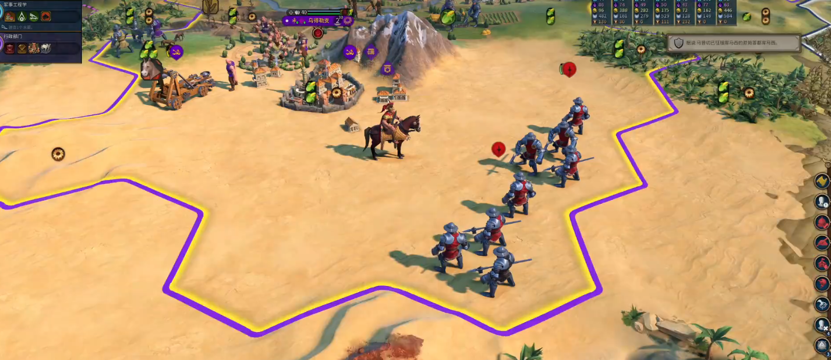 正确使用大将军的关键在于精心的部署而非让他上前线攻击,当你获得一位大将军后,需要将他移动到你的陆军部队附近,其光环会自动生效,覆盖周围两个单元格内的符合条件的陆军单位,这通常能增加这些单位的攻击力和移动力,在准备进行关键战斗,比如围攻一座敌方城市或发起一场野外决战前,你应该提前将大将军安全地移动到前线附近,让他的光环覆盖尽可能多的主力部队,从而使你的军事行动如虎添翼。所有陆军统帅都被认为是需要优先招募的伟人,因为他们的增益对于军事扩张和征服胜利至关重要,能够直接影响战局的走向。
