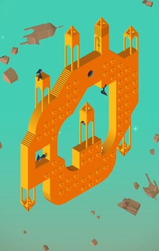回到变化后的主场景,通常需要操作艾达走到粉红色或特定的旋转方块上,通过旋转底座将道路转向建筑的外侧。在这个过程中,动作需要缓慢并仔细观察道路连接,一边走一边旋转机关,才能发现通往下一个入口的通路。引导艾达进入另一扇小门,会来到一个新的场景,例如带有可移动底部方块的区域,解谜步骤通常涉及移动底部方块来打开通路,并操作靠近乌鸦的旋转建筑块,以点亮后续的机关。当三个子场景的机关全部被点亮后,主场景的观象台会出现最终形态,所有乌鸦会变成彩色。此时最后一步是旋转主场景的视角与机关,调整出通往观象台顶端的最后道路,让艾达走到最终目的地,即可完成第十章的所有解谜并观看通关动画。