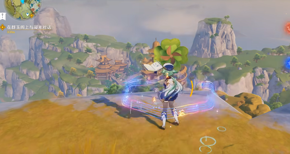 登首先得找到那个藏在璃月天衡山附近的四叶草机关。这个机关看起来像个风车,用风属性角色轻轻打一下就能激活它。激活后会冒出一股风场,这时候展开风之翼就能顺着气流飞上去啦。风场只能带你到群玉阁下方的浮岛,想真正进到里面还得继续找路。