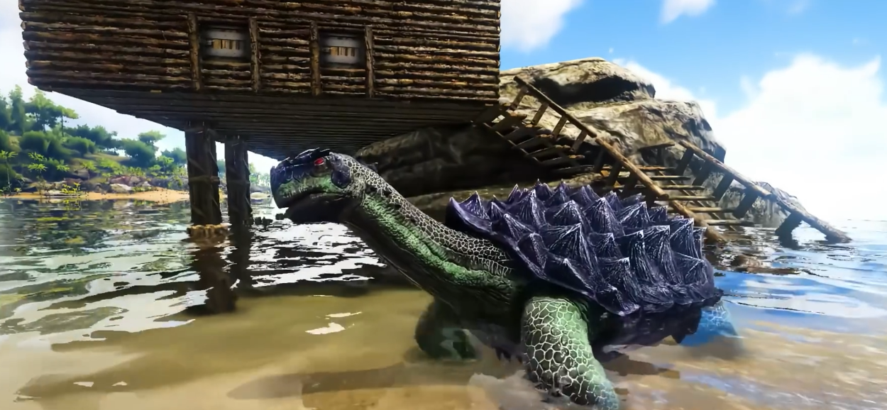 淡水碳龟是方舟生存进化中一种高血量、性情温顺的生物,广泛分布于海边、森林和浅水区域。驯服前需准备麻醉箭、十字弩或弹弓等击晕工具,以及紫色浆果、蔬菜或无齿翼龙蛋饲料作为驯服食物。由于其在陆地上移动缓慢且攻击性低,适合新手作为初期驯服目标。
