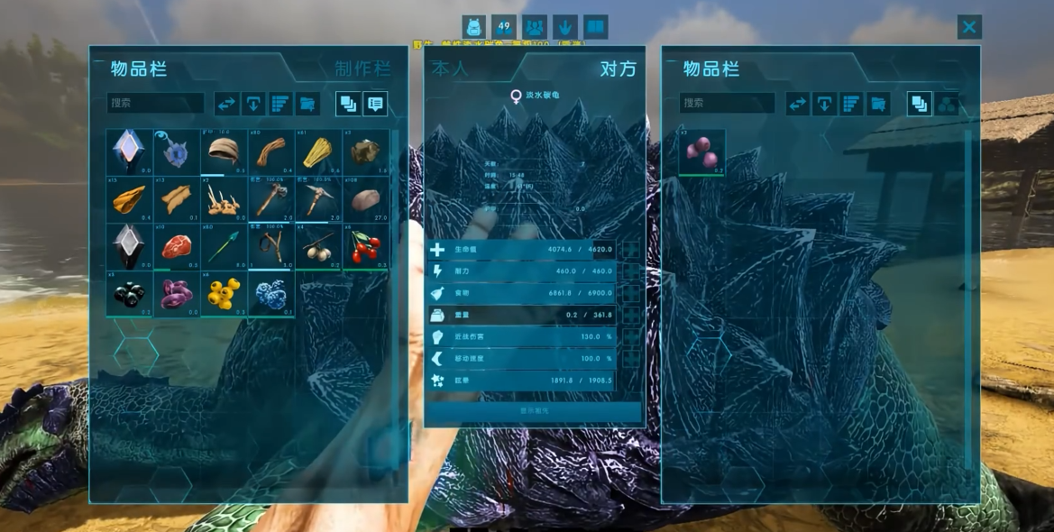 无齿翼龙蛋饲料效果最佳,其次为蔬菜和紫色浆果。若缺乏饲料,需准备大量浆果并延长驯服时间。驯服期间需定期检查眩晕值,通过强制喂食黑色浆果或麻醉药补充。淡水碳龟血量极高,但攻击力有限,驯服过程无需过度担忧其反击威胁。