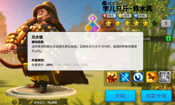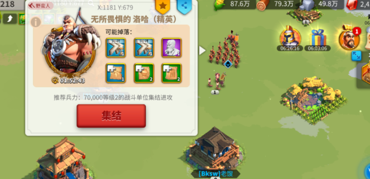 战斗准备阶段需注意洛哈精英的强度差异,普通难度建议最低配置1.2万T1单位,困难难度需7万T2单位以上。推荐优先激活增加血量和攻击的符文BUFF,如攻击强化、联盟领地增益等。武将选择以高爆发单体输出为主,骑兵系武将萨拉丁搭配铁木真或步兵系亚历山大搭配查理马特能有效提升伤害效率。贞德的群体BUFF可通过攻击附近野蛮人或小号触发,为主力队伍提供额外增益。战斗中需避免使用治疗型技能,因洛哈精英战强制禁疗机制会抵消回血效果。