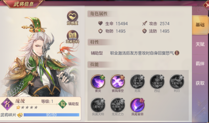 羁绊方面,与庞统共同上阵可激活关键增益:徐庶暴击率提升20%,前两回合怒气获取速度增加15%且免疫怒气降低效果。这一羁绊显著优化了徐庶的启动节奏,确保首回合普攻后必定释放怒攻,第二回合普攻可获得460点怒气(基础400点+15%加成),第三回合再积累400点,形成稳定的怒攻循环。无双技能进一步强化生存与输出,生命值低于30%或40%时消耗畅饮层数回复生命与怒气,提供反打机会。
