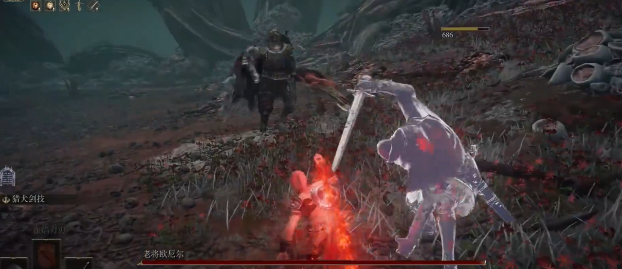 装备选择上,出血属性武器能有效压制BOSS血量,弹反战术对部分近战招式有奇效。骨灰召唤物可吸引仇恨,但需避免被士兵集火秒杀。击败后掉落老将的军旗与纯净金针,前者是强力的团队增益武器,后者为米莉森支线任务关键道具。