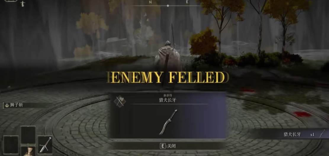 击败猎犬骑士达瑞威尔后,会自动获得猎犬长牙。这把武器的战技猎犬剑技非常实用,第一段为横扫攻击,第二段可通过重击触发闪身后跳并接续突进斩击。战技的位移效果既能有效输出,也能快速拉开安全距离。武器自带的出血效果在对付高血量敌人时尤为有效,配合灵巧属性的加点可以进一步提升伤害。