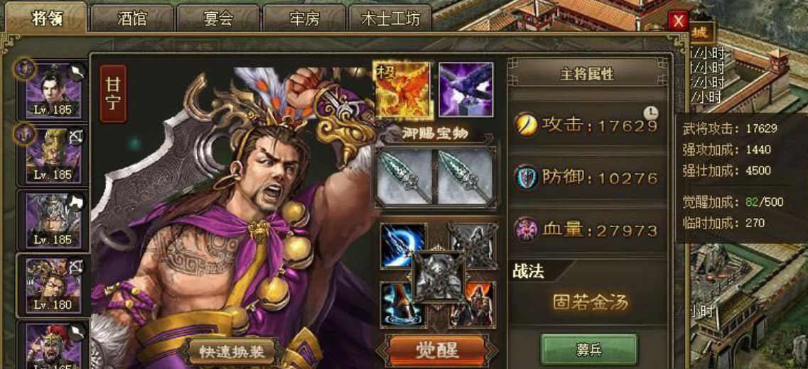觉醒后的甘宁在装备选择上需要更注重战场适应性,水域作战时优先考虑蛟龙巨浪战法加成的套装组合。琴箫统帅篷是值得关注的特殊装备,其提供的团队护盾效果能弥补甘宁防御薄弱的短板,在保持输出的同时提升生存能力。装备品质方面,天命橙装是觉醒的基础门槛,高品质装备带来的属性加成对甘宁这种成长型武将尤为关键。