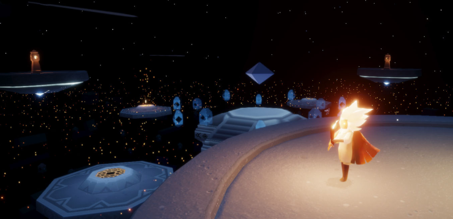 禁阁作为光遇中的重要场景,其光芒分布具有特定规律。禁阁光芒通常隐藏在深处或需要解开谜题才能到达的区域,主要包括紫色、蓝色等不同颜色的光芒。紫色光芒位于禁阁一层右侧的双人门内,需两名玩家协作点燃石门机关方可进入隐藏地图,进入后等待片刻即可看到紫色光芒沿固定轨迹移动。蓝色光芒则需前往霞谷溜冰场,从冰面窟窿跳入湖底追踪,其移动速度较快需预判飞行路线。