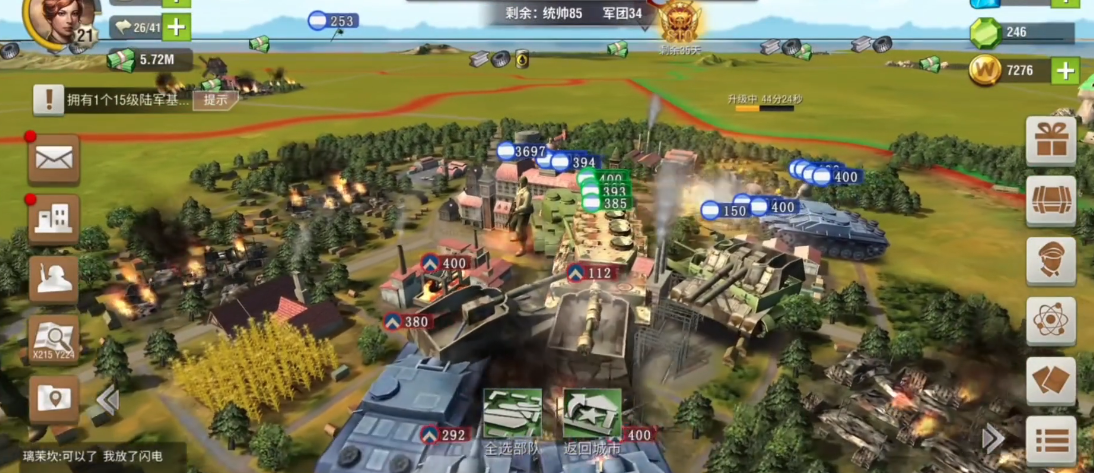 有了资源和技术支持,接下来就是爆兵环节啦。军事区的工厂等级越高,造兵速度越快,所以尽量把军工厂升到高级别。装甲车属于前期过渡兵种,但性价比很高,建议先造个几百辆用来刷野地和保护资源采集队。记得派个后勤属性高的军官当市长,这样能减少资源消耗,加快生产速度。如果资源充足,可以同时训练一些突击炮或火箭车配合装甲车作战,这样混编部队的战斗力会更全面。