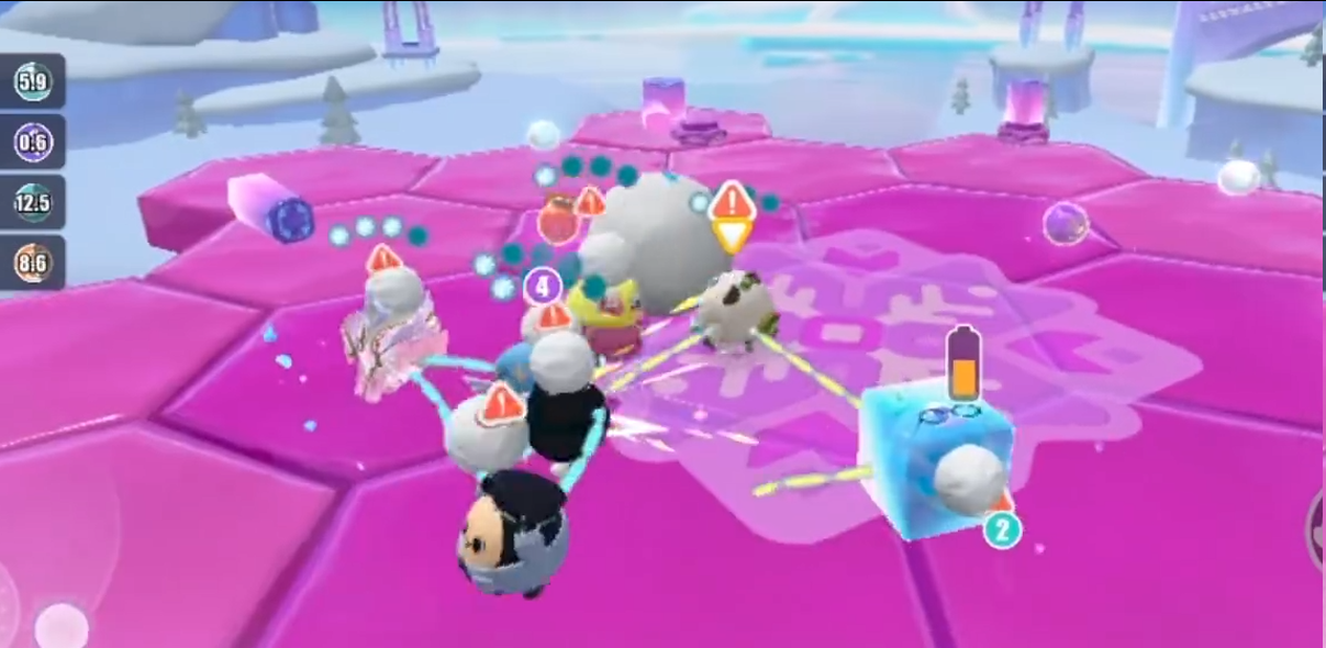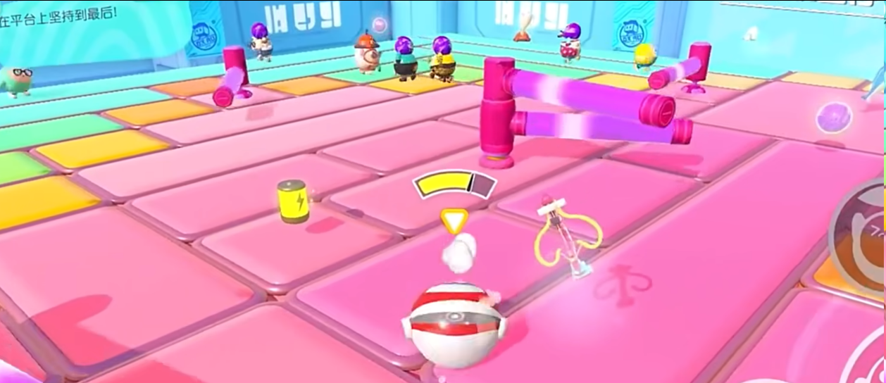 想要顺利通过第一关,关键在于掌握道具使用和时机把握。开局倒计时结束后,立刻往前走捡起变小的药水,这是通过第一道障碍的关键,不缩小体型就会被卡住。接着快速拾取传送球扔到对岸,利用传送门跨越断桥区域。这两步操作是通关的基础,动作要连贯才能节省时间。