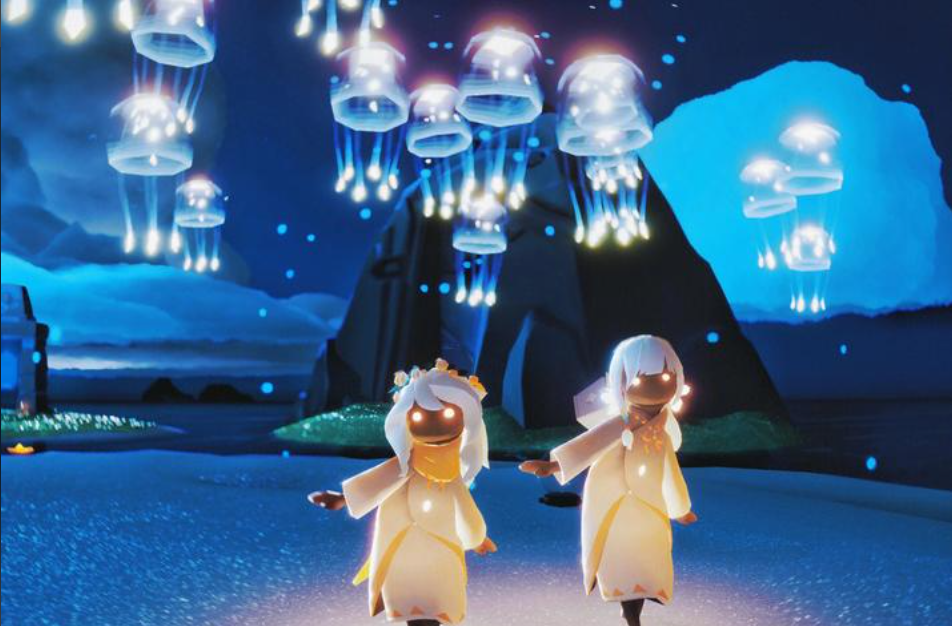 抵达水母召唤区域是通关的关键转折点。在布满亭子的地图中央,需点燃所有白色蜡烛触发水母群,跟随上升的水母可直达雨林神庙入口。该环节需优先处理高处蜡烛,避免因低空飞行被雨水频繁打断。神庙前殿存在间歇性降雨,建议沿墙壁边缘移动减少能量损耗,最终在最高处石台点燃火焰触发通关动画。