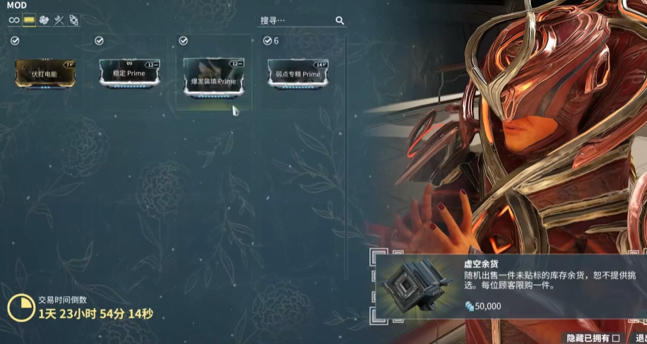 虚空商人的存在为游戏增添了周期性收集要素和战略规划层次。其商品库庞大且轮换周期较长,部分高阶P卡如剑风Prime(+165%攻击范围)或川流不息Prime(+275%能量上限)对战斗效率提升显著,属于优先兑换项。部分任务如沙海遗踪需通过虚空商人获取设计图,且圣装沙甲与之互动会触发特殊剧情。