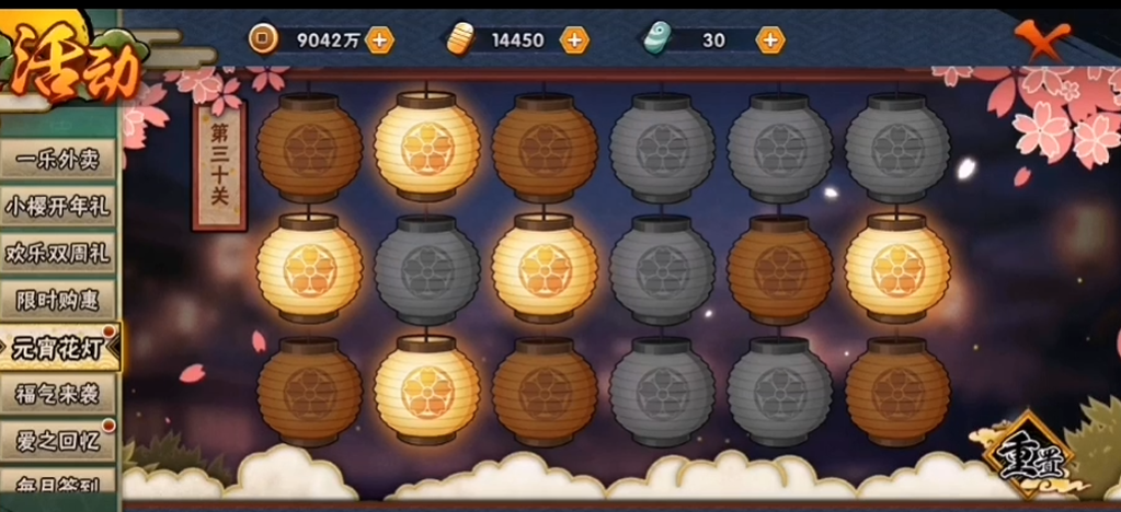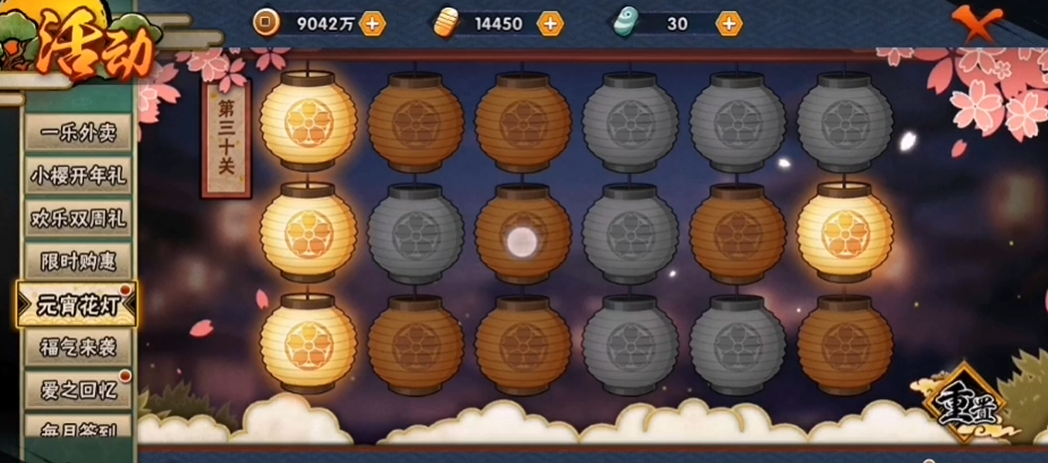关于活动机制,花灯解谜是通过消耗福袋挑战的,每次点击灯笼会反转自身和相邻灯笼的明暗状态。30关属于后期关卡,设计上需要一定逻辑推理,但本质上还是找规律。如果卡关了,不妨观察哪些灯笼会影响关键区域的亮灭,优先处理能联动更多灯笼的点击点。这类解谜活动通常不需要战力或忍者加成,纯靠策略就能搞定。如果遇到其他关卡卡住,可以搜对应关卡的图文攻略,大部分问题都能找到现成解法。