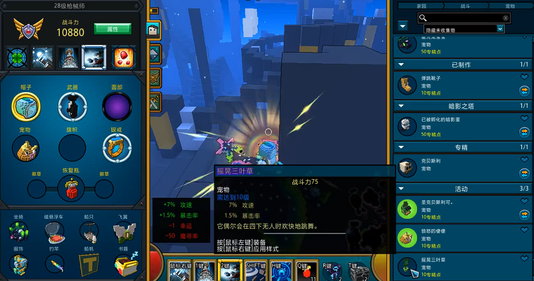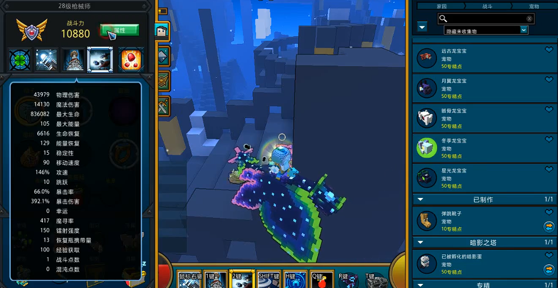 技能循环体系遵循能量管理原则,常规输出以左键普攻为主,被动触发时右键蓄能炮可无消耗释放。一技能的爆炸跳跃兼具位移与伤害功能,大招狂热弹幕提供攻速与移速加成。宠物搭配方面推荐选择时空术士或星光龙宝宝,前者提供魔法伤害加成与冷却缩减,后者具备灼烧效果。坐骑优先制作星光龙以提升基础魔法伤害,后续可补充骸骨龙增强暴击属性。药水选择暴击触发型精力小瓶,徽章组合推荐吸血与秘法搭配,这种配置在维持输出的同时能有效提高续航能力。