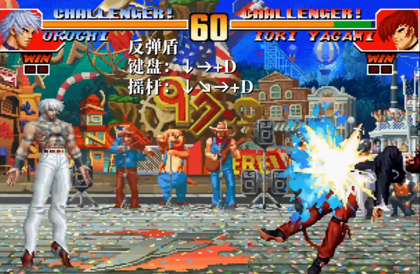 大蛇作为拳皇97的最终BOSS,其出招表与常规角色存在显著差异。核心招式包括黑粒子(↓↘→+A)、反弹盾(↓↘→+D)、阳光普照(↓↙←+A/C)以及掏魂(→↓↘+A/C)。黑粒子是多段不可抵消的远程攻击,适合牵制对手;反弹盾能吸收飞行道具并快速积攒能量;阳光普照作为全屏必杀技,伤害极高但收招硬直明显;掏魂则是带有吸附效果的投技,需近身释放。这些招式组合奠定了大蛇攻防一体的战斗风格,但需注意其移动速度较慢的弱点。
