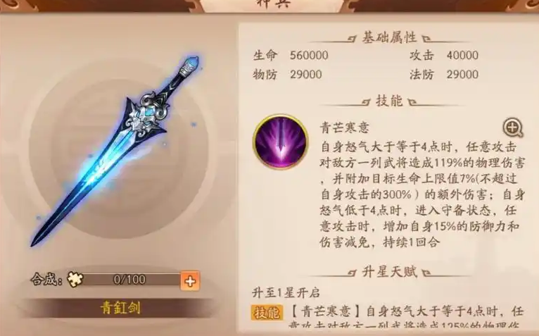 神兵系统对群雄阵营的提升非常显著,吕布适合装备青釭剑或闭月团扇来增强伤害或控制,而贾诩可以使用丈八蛇矛补足命中率,华佗则搭配绿绮琴提高治疗量。低阶神兵如地刺、冰封或狂熊是性价比高的过渡选择,能强化暴击或控场效果。即使某些神兵暂时不用,也要激活图鉴,因为它提供永久的属性加成。平民玩家可以通过长期积累和活动资源,逐步完善神兵体系,无需急于追求高级别装备。