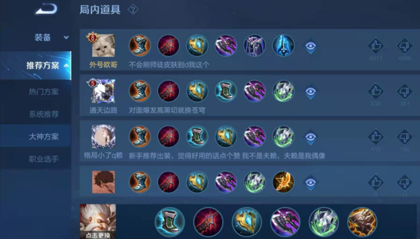 到了比赛后期,装备需要进行针对性的替换与调整。当经济溢出时,可以将攻速鞋卖掉,根据局势更换为其他装备。若需要进一步提升攻速和留人能力,寒霜袭侵是个不错的选择,它的减攻速效果在对拼时也很有用。如果敌方整体护甲很高,补充一件碎星锤能确保你的伤害不被抵消。纯净苍穹也是一件值得考虑的备选装备,它提供的主动减伤效果能与老夫子自身的二技能免伤叠加,在承受集火时能创造奇迹。