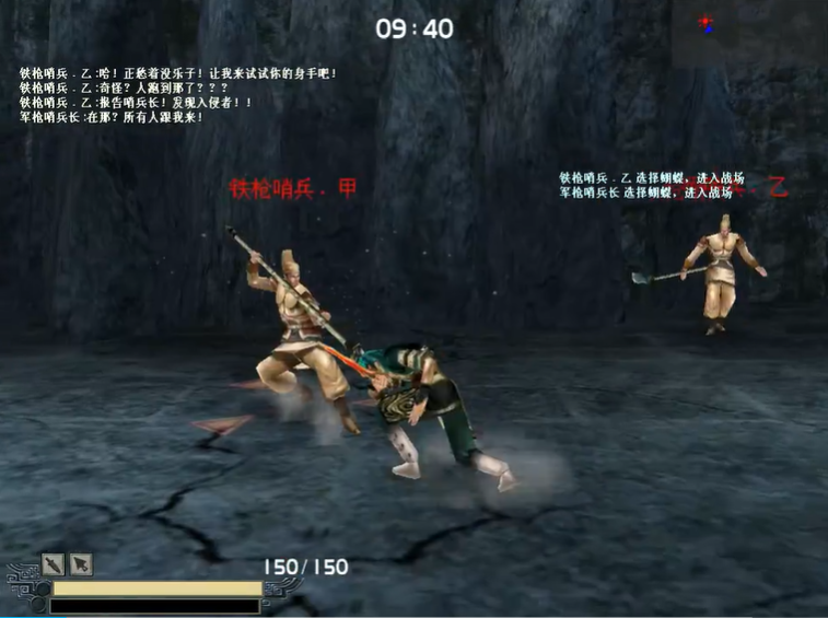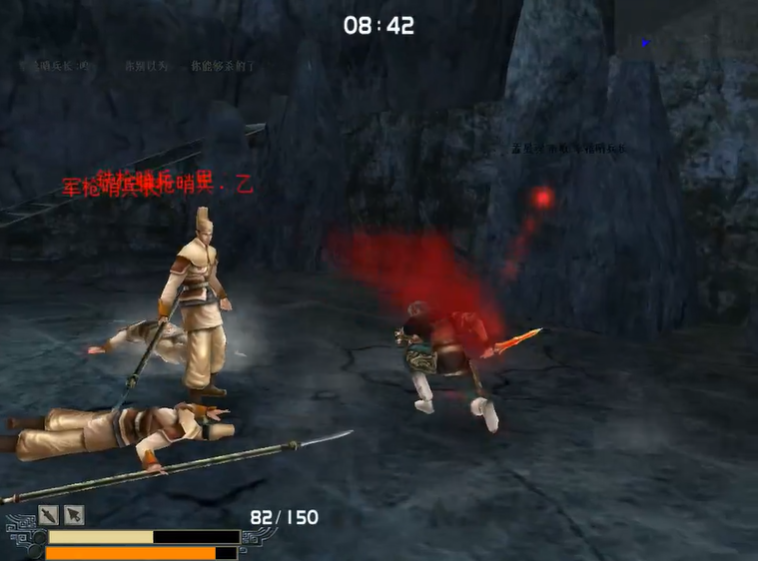 武器选择与地形利用是支撑上述战术的重要部分。匕首因其攻速快、连招灵活,适合执行对单个哨兵的快速单杀;而长枪攻击范围广,利于应对可能的复数敌人情况,但起招较慢,需要根据战况灵活切换。洞穴中央平台旁存在一处高台,玩家可通过跳跃攀爬至上方,此位置是关键的战术点,因为NPC无法跃上高台。当被围攻或需要调整状态时,可主动退至高台,切换飞镖或毒镖进行远程消耗,以此规避近战伤害并创造安全的输出环境。