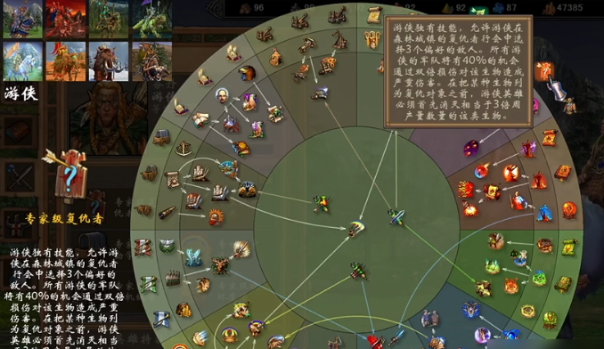 实际对战中需严格把控技能点分配,前期优先点出复仇者基础伤害加成与幸运术士兵幸运,中期补全后勤学移动加成与光明魔法基础控场,后期集中资源将四大核心技能全部升至专家级并解锁全部关键进阶能力,切勿学习防御学、巫术等非核心技能占用技能槽,确保技能树路线纯净,解锁自然之幸运后,森林部队每一次攻击都能稳定触发幸运效果,配合注魔之箭与光明魔法增益,可轻松碾压敌方阵线,无论是野外开荒还是主力决战都能占据绝对优势。