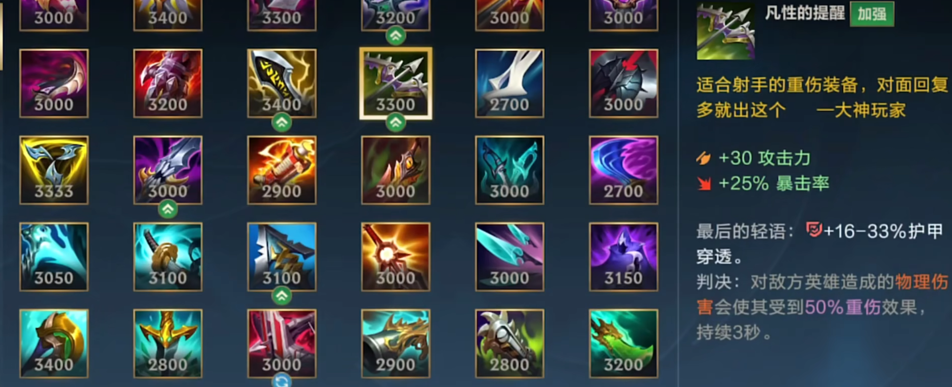 射手对抗坦克时,破败王者之刃是首选核心装,其被动可基于目标最大生命值造成额外百分比伤害,远程普攻附带目标当前生命值8%的额外魔法伤害,近战收益更高,同时提供攻速与生命偷取,保障持续输出与续航。后续优先合成多米尼克领主的致意,提供高额百分比护甲穿透,针对高护甲单位大幅提升伤害;若敌方坦克有蒙多、狗头这类强回复能力,就将其替换为凡性的提醒,在保证穿透的同时施加重伤效果,让敌方治疗与回血效果大幅衰减。鞋子选狂战士胫蓝提升攻速,后期可补卢安娜的飓风强化团战AOE,或出守护天使提升生存,确保输出环境稳定。