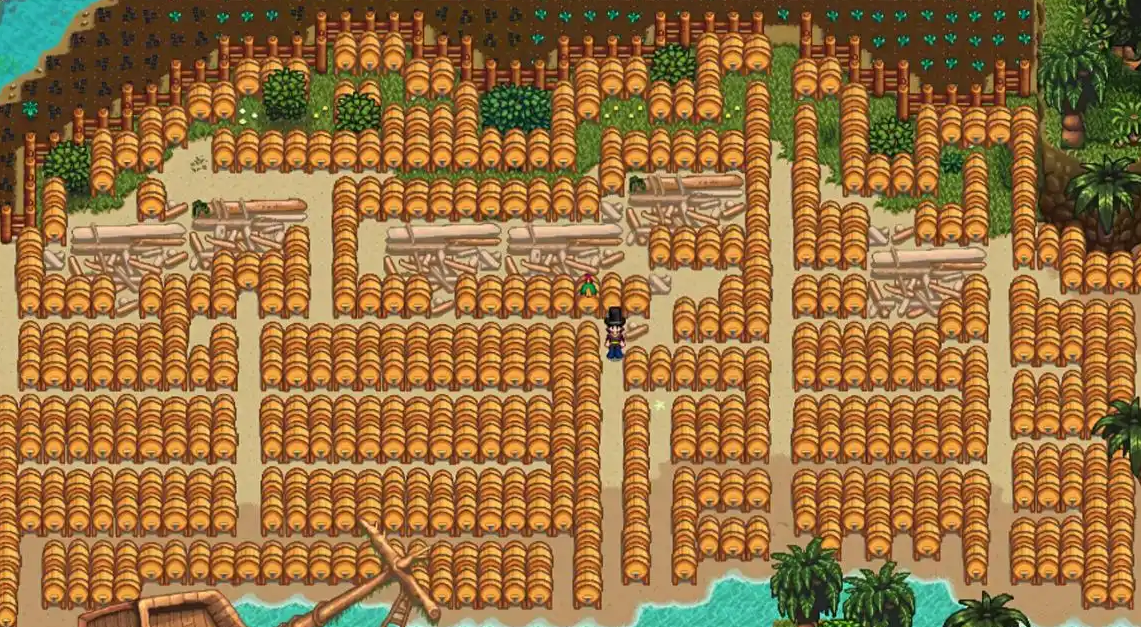 中期重点转向温室种植与酿酒体系搭建。解锁温室后立即种植上古水果或杨桃,这两种作物在25%利润率下仍保持较高性价比。同步在农场外围种植橡树获取树脂,每个树脂需10-12天成熟,这是制造小桶的关键材料。小桶布局建议采用分层设计,温室内部放置30-50个初级小桶,外部畜棚改建为酿酒车间可容纳100-150个。此阶段需保持每日收取树脂、补充小桶的节奏,形成稳定产能。