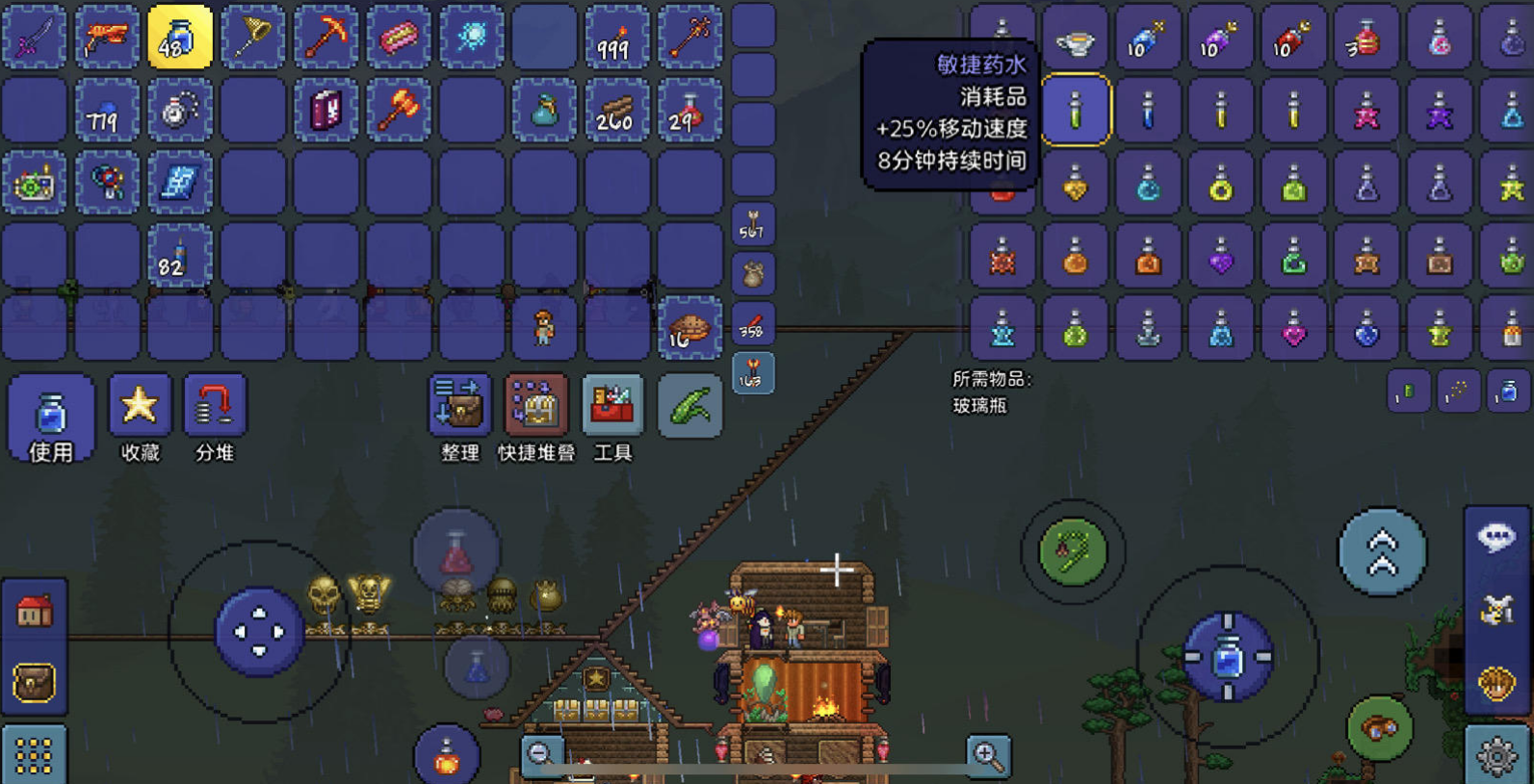 超级治疗药水虽然回血猛,但别当水喝。药水疾病会让后续回血效果打折,关键时刻再掏出来用。平时打小怪用普通治疗药水就够了,打月亮领主这种终极boss再上超级药水。炼药桌一定要优先做,33%概率不耗材料,长期下来能省下几十个天界碎片。