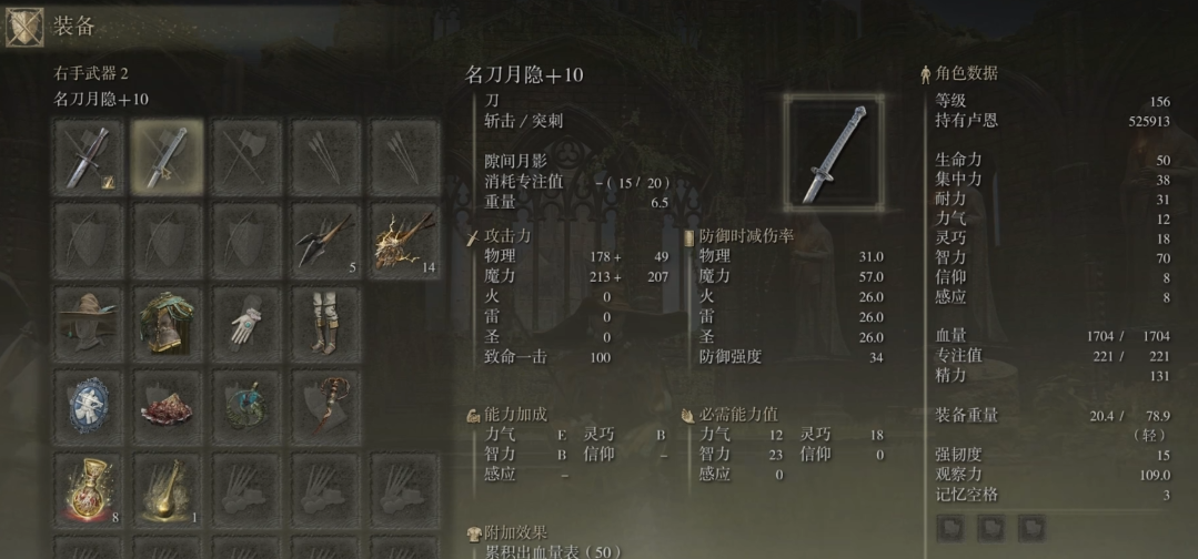 加点方面,智力是核心属性,先点到18满足陨石杖需求,再逐步提升到40以上。集中力加到20左右保证蓝量续航,生命力建议点到20避免被秒杀。灵巧可以适当加一些,能加快施法速度。力量只需满足装备需求,比如拿龟壳盾需要10点力量。前期不用纠结其他属性,专注智力和生存即可。拿到名刀月隐后可以适当补灵巧,这把武器战技强,适合法师近战补刀。